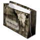 Buffalo bull skallskallhuvud med horn vintage stil ranch professionell papper presentväska. Rustic western grunge struktur. Ditt företag namn kan anpassas. Barn wood cowboyen inspirerade. Antique sepia brun bison bra art. Image copyright Marg Seregelyi Photography.