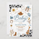 Sätt dig i sadeln för en rolig fest med denna västerländska inbjudan till baby shower, perfekt för att hedra en speciell blivande mamma. Med cowboyhattar, stövlar, lasson, kaktusar och rustika ko-tryckta accenter fångar denna design charmen från det Vilda Västern. Den stilrena layouten och lekfulla detaljerna gör den idealisk för landsbygdsinspirerade sammankomster, rodeo-tema shower eller rustika gårds-fester. Anpassa med dina evenemangsuppgifter för att skapa en unik souvenir som gästerna kommer att älska.