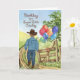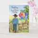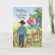 En betesmark i land med ballonger som är bundna till grind och väg är perfekten för denna westerna cowboypojke i land, som har slitit upp önskemål för bockaroon på födelsedagen.