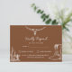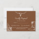 Complete your rustic celebration with this stylish Western wedding RSVP card. Featuring a warm desert brown background with elegant white illustrations of a longhorn skull, cactus plants, and classic cowboy boots, this response card is perfect for a country, ranch, or cowboy-themed wedding.
