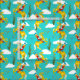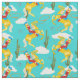 Yeehaw! Add a wild touch to your next sewing project with this fabric and it's wild west pattern. A brightly colored cowgirl and horse, lassos, cacti, horseshoes and clouds are set against a bright blue background in this delightfully campy western print.