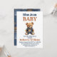 Western Denim Patchwork Bear Blue Jean Baby Shower Inbjudningar