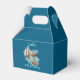 This favor box features a western horse watercolor design with soft floral accents and classic cowgirl elements, including cowgirl boots and a cowgirl hat. The rich navy background paired with turquoise and neutral tones creates an elegant western look that’s perfect for a horse birthday party.