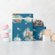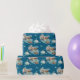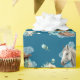 Detta inpackningspapper har en västerländsk hästmålning i akvarell med mjuka blomaccent och klassiska cowgirl-element, inklusive cowgirlstövlar och en cowgirlhatt. Mot en rik navyblå bakgrund med turkos och neutrala toner skapar det en elegant västerländsk look som är perfekt för att slå in presenter till en hästfödelsedagsfest.