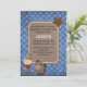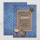 Westerna pojke först födelsedagsfest inbjudan gjorde i blått på blå, nödlidande gingham-checkbakgrund. Ett brunt liknande textområde i en kartong har grafik över en stjärna, barncowboyen och hästen. Anpassa texten till din lilla mans speciella dag.