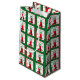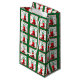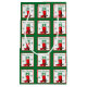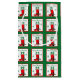 Röda cowboystövlar inuti grönten fyrkantigt med God jul på presentsäck.
