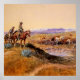 Charles (CM) Russell, "cowboykonstnären", skapat mer än 2 000 målningar av cowboypojkar, indianer och landskap i Westerna Förenade Stater. Han bodde och arbetade bland cowboyerna och den indiska stammen i sina yngre år. Den här bilden kallas "Arbetad över" och skildrar ett vatten hål på prärieet som rinner torr.