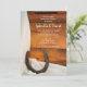 Gästerna i inbjudan till en före giftermål party hedrar bruden och brudgummen med den informella och ändå elegant-inbjudan till Westerna högtidlighållare i Bröllop. I den här anpassningsbarna i chic finns ett digitalt färgfoto av ett rostiskt hästskop och en vit satinväv med en rustiskt vävlad daglig daglig land av brunt trä. Perfekt eller idé för cowgirl brude and cowboygroom och en avslappnad lador party firande.