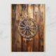 Rustik lantlig träbakgrund med masonburksljus som hänger från strängljus, coolt gammalt trävagnshjul med jutesnöre och gammal westernrep ram.