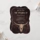 Den här typen av westerna landsbyggsbröllop-kortinbjudningar med klumpor har en rustik vintage beige brun antique rodeo cowboybakgrunden i stil-buskskalle. Gamla vilda western, unika, coola husdjur. Upphovsrätt Marg Seregelyi Fotography.