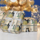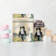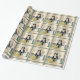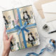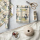 Ett westernt par i tecknad stil med staket, hay bale och ett lariat rep tryckt på presenter som är pappra för bröllop.