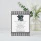 En inbjudan till möhippan par i ett westernt tema. Bakgrund är en svart och vit färg som placeras under en vit kvadrat med svart text. Papper projektionsyta har valts.