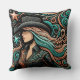 Western toolad läder Skriv ut Cowgirl Dekorativ kudde i turkos, svart, persiko och kopparkonst genom att dansa Cowgirl Design for Rodeo Days