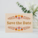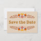 Den mexikanska blommigten sparar datumkortet med fiesta folkkonstblommor i den jorda färg-paletten med champagnebeige brun blå rosa orange och gult. Distinktiv utformning med western typografi och handskrivet skript för elegant. Mallen är konfigurerad för att anpassa för alla tillfälle och anpassa sig efter händelsemedatumet. Bläddra i min mexikanska Blommigt för matchande objekt.