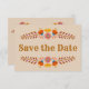 Den mexikanska blommigten sparar datumkortet med fiesta folkkonstblommor i den jorda färg-paletten med champagnebeige brun blå rosa orange och gult. Distinktiv utformning med western typografi och handskrivet skript för elegant. Mallen är konfigurerad för att anpassa för alla tillfälle och anpassa sig efter händelsemedatumet. Bläddra i min mexikanska Blommigt för matchande objekt.