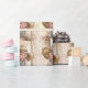 En realistisk och modern träkorngrafik med en vit färgad nedfläckad med vedkornbakgrund där den kutaste lilla cowgirl med en stor Stetson-hatt och cowboystövlar är sitta. Det är idealiskt för vilket westernt temaparty som helst, rustiskt landsbyggsbröllop, cowboydusch eller någon firande som kräver skog eller avverkning. Lägg till blommor i mönster eller egna foton för att göra det helt unikt.