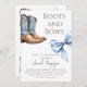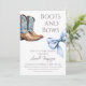Inbjudan till elegantens Westerna Boots och Bows Theter Baby Shower innehöll vattenfärgsblå bågar och blå cowboystövlar. Matchande produkter som du hittar i samlingen.