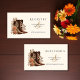 Fyll i bröllop-skrivbordet med de här elegant- och smekmånadskorten som är designade för att komplettera ditt moderna Westerna tema. Med broderade blommor i neutralten och charmerande cowboystövlar blandar de rustisk charm med tidlös elegans. De här korten är utskrivna på förstklassig texturerad kartong och ger en snyggt för att registeruppgifter eller information om smekmånadsfonder. Anpassa dem med önskad ordalydelse eller webbplatslänkar, skapar det enkelt för gästerna att bidra på ett meningsfullt sätt.