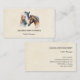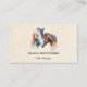 Affärskort med en vacker vattenfärg, teckning. Med ett par hästar, brunt och vitt. Huvud och nacke synliga med droppfärg längs basen av deras nacke. Sydvästra vibe.