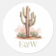 Westerna Bröllop Cactus Monogram Runt Klistermärke