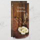 Meddela din ranch stil giftermål-ceremoni till dina gäster med det charmerande Westerna Bröllopsprogrammet Cowboy Boots, Daisys and Horse Bit Land. Bröllopsprogrammet för hästdjurets anpassningsbar av rustik chic har ett foto med en blommigt av ett par westerna cowboystövlar, en bukett av blommar av gult och blommor av vit daisy, vitpärlhalsband, hästbitor och läderhartser med en brunfärgad bakgrund av barrträ. Perfekt för en ceremoni och mottagning i party och på en gård där man avslappnad.