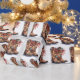 Den westerna färgen för ljus och roligt, den roliga cowboyen cowboybollar land Chrismas papper. Beror på festive helgdag-emballering. I designen ingår bruna cowboystövlar som är inslagna i ljus och en röd buske. Vit bakgrund.