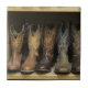 Fototryck av cowboystövlar på en hylla som är tryckt på keramiskt plattor
