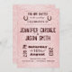 Ett typografiskt stil-landsbyggsbröllop i coola på en elegant roterar snabbt rosans bakgrund. Det finns två små hästar högst upp på inbjudan som anger texten "Du är inbjuden till bröllop firande av".