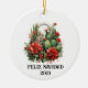 En sjudande vattenfärgsbildning i färgaden och en festblomma med "Feliz Navidad" och året under. Denna keramiska ornament kan anpassas för att ändra den aktuella texten. Ta med några Westerna vibes i ditt hem den här julhelgen med den här unika prydnadsformen!