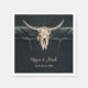 Dessa westerna bröllop-cocktail-napkins har en cowboyskalle med beige grått land grunge struktur bakgrundskonstruktion. Barn vintage stil, gamla vilda western inspirerades. Coola, trendig lantbruksdjur. Upphovsrätt Marg Seregelyi Fotography.