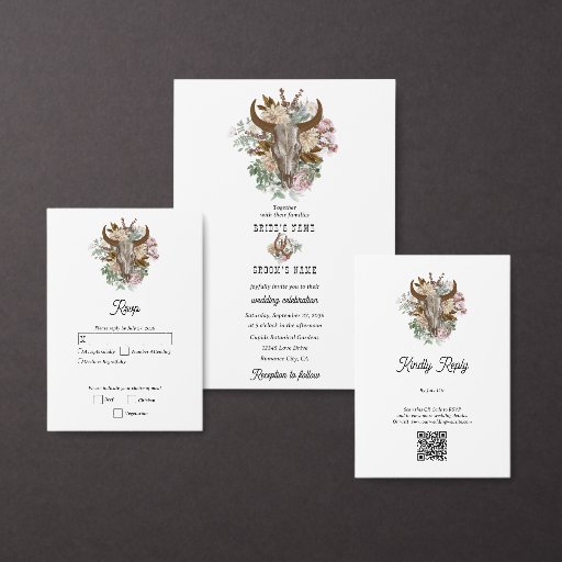 Western Country Cowboy Boho Cow Skull WeddingDesignad av iDove Design