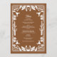 En modern Western cowboyflicka i stil med hand plockade inslag är utformad för ett koskalle, hästskos, blommigt och tartprydnadsämnen. Brun och vit blommigt gräns bröllop med blommigt, kaktus, skalle och hästskos från hand plockade. Den här contemporaryn är en modern utformning av det Westerna landsbyggsbröllopet som är perfekt för alla säsonger. En elegant brun och vit ranch, gård eller stil med illustrationer av hand plockade. Ett Westernt Land cowboytema med bröllop-menykortsdesign med modern elegant inslag. Det finns också möjlighet att matcha bröllopsinbjudningar och andra artiklar i kontorsartiklar.