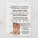 En western bröllopsinbjudan från land som är perfekt för ett par som gifta sig i sina cowboystövlar! Ett foto med framtida brud och groom lägger till baksidan.