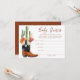 Lägg till roligt och förväntan till babyduschen med dessa cowboyduschskal för babyskor som gissar på spelkort. Med en charmerande vattenfärgsillustration av en cowboybock fylld med kaktusblommor och levande orange- och rosa-kaktus, matchar dessa kort perfekt din cowboymatta eller cowgirl-temed firande. Gästerna kan förutsäga födelsedatum, tid, vikt och längd för baby, skapar spelet och aktivitet för alla. Det bruna, visuella manuset förbättrar sydvästra stil och de ifyllda korten blir en omhuldad keepé för mor att bli. De här gissningskorten är ett fint och snyggt tillskott till dina babyduschfestligheter!