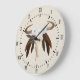 Rustiska westernare blommigtar av skalle med bruna fjädrar utformar en akrylväggklocka med en slimmad linbakgrund.