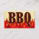 Ett anpassningsbar-affärskort med röda flammor och brunt och rött westernt brev för ditt namn och affärer på en faux parchment-bakgrund och BBQ på baksidan. Klicka på Anpassa om du vill ändra typsnitt, storlek, kortstorlekar, färgens framsida och baksida i bakgrunden, till och med spara av designen senare.
