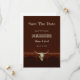 Land westerna cowboykort av roligt av brunträ av bröllop spara datum. Rustic land-bull-sjukdomskorpan. Använda lite humor med den här söta, roliga stil-designen. Text kan vara personlig. Gammal antikisk vintage unik för vilda western. Coola, trendig lantbruksdjur. Anpassa skript och typografi. Upphovsrätt Marg Seregelyi Fotography.