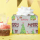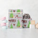 Det upprepade mönster på denna söta julomslutning papper är en bild av en Väster Highland White Terrier-hund med röd och vit tomtehatt. Hund finns bland paket som är en lätt inslagen gåva bredvid ett dekorerat Julgran. En bullfinkfågel landar på träd bakom den. God jul" står i den smidda texten från buffelstolpe, och din egen namnteckning finns i två fält för att du ska kunna anpassa den.