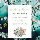 Bröllop spara datum med Väster Highland hund design. Wildblommor och valvbild vid grund med fem linjer grönt för trädgårdstext att anpassa. Omvänd är solid blek grönt. Perfekt för par som planerar att ta med sin baby i päls i vår eller sommar bröllop. Hämtningsalternativ, pappra uppgraderingar och storleka val.