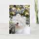 Väster Highland Terrer ger sitt lycklig leende och sitter framför hundälskarns Julgran Julhälsningar julkort