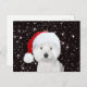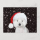 Väster Highland Terrier hund, eller Westie, bär en julhatt med mousserande helgdag i hundälskarna julkort