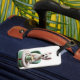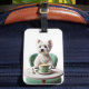Westie med en latte bagagebricka