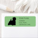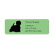 hund silhuette av väster, höglandstyp, i svartvitt, med fast grönt som bakgrund. Anpassa med ditt namn och adress i svart teckensnitt.