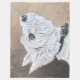 Väster Highland White Terrier, Westie tittar upp, med brun bakgrund. Benji. Copyright © 2025 Angi Laframboise. Alla höger reserverade. Konsthantverk i hund aveln till hundälskare.