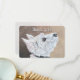 Väster Highland White Terrier, Westie tittar upp, med brun bakgrund. Benji. Copyright © 2025 Angi Laframboise. Alla höger reserverade. Konsthantverk i hund aveln till hundälskare.