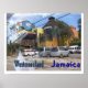 Poster med bild i Westmoreland Jamaica. Foto av en gammal byggnad och viss minikollektivtrafik
