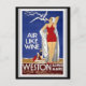 Underbar vintage illustration av att en kvinna i badande kostym matas vin av fiskmås.Poster för Weston Toppen-mare i England, en kuststad med luft som vin som!