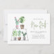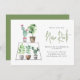 Ett enkelt kort för söt som meddelar att du nyligen har flyttat till familj och vänner. Den enkla utformningen har en vattenfärgad illustration av ett rack med olika krukväxter. Anpassa till din familj namn och ny adress. Den motsatta sidan samordnas i grönt