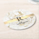 Wh & Guld Marble Guld Pub, DIY Black Namn Monogram Underlägg Papper Rund