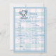 Grått och blå baby-björn för en pojkes babydusch Vad är på ditt Mobila babyduschspel? Filt med blå sydd kant gräns mot bakgrund. Mallar finns på baksidan.